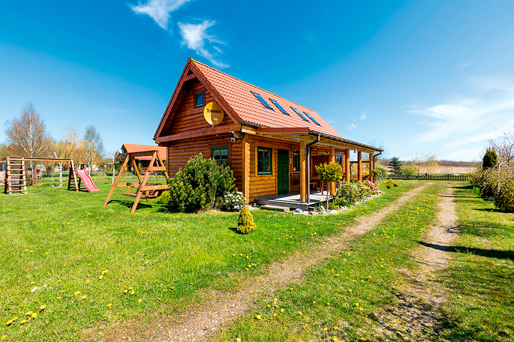 Haus: Schönes Ferienhaus mit 2 Doppelhaushälften in skandinavischer Rundholzbauweise. In der weitläufigen Anlage: Separates Saunahäuschen mit Relax-Terrasse. Angelteich. Grillplatz. Waschmaschine. Großer Garten mit Kinderspielplatz (Schaukel, Rutsche, Sandkasten). 5 Fahrräder ausleihbar. Parkplatz auf dem umzäunten Grundstück.