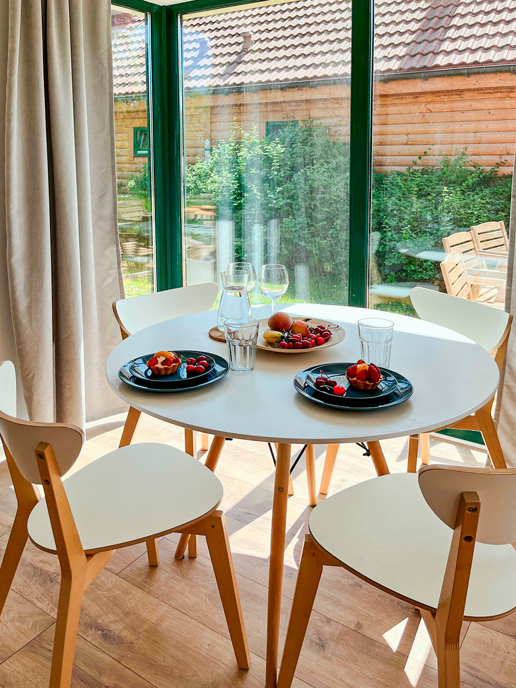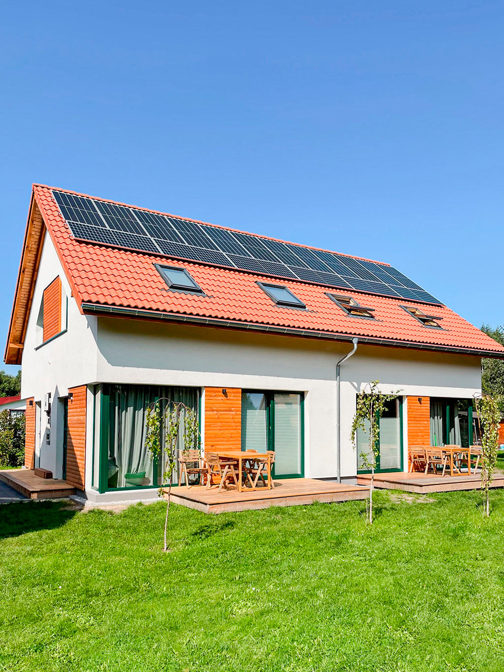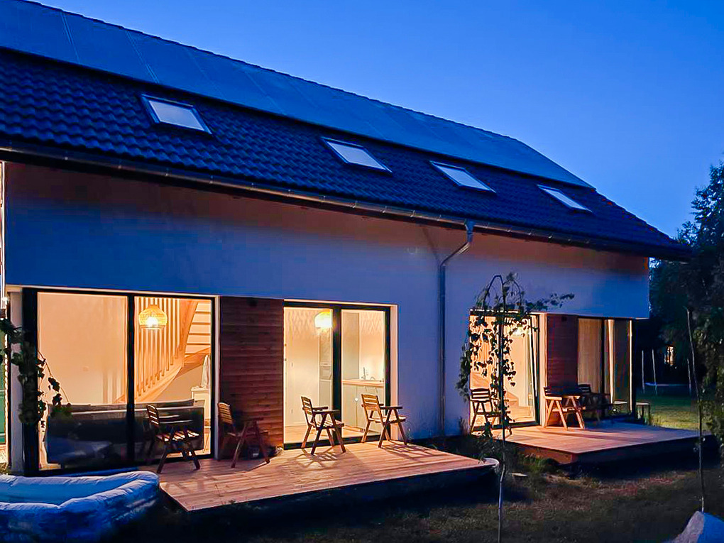 Schöne Reihenhäuser mit geschmackvoller Einrichtung. Heizung durch Fußbodenheizung (Parterre), E-Radiatoren (1. Etage). Internet über WLAN. Terrasse mit Sitzmöbeln, Grill.