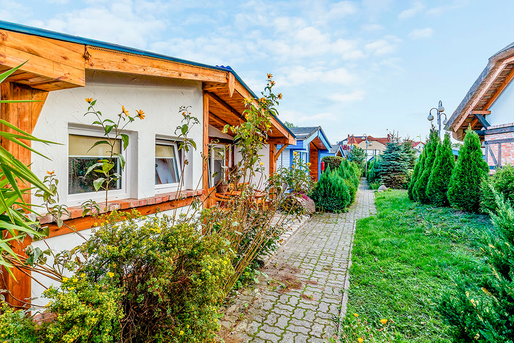 Ort: Niechorze. Ideale Lage in einer Ferienhausanlage in der Ortsmitte. Ostseestrand nur 100 m. Ortsmitte 300 m. Einkaufsmöglichkeiten 200 m.