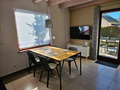 Haus: Geschmackvolles, komfortables Doppelhaus. Schöne Haushälfte mit hochwertiger Einrichtung. 2 Schlafzimmer, 2 Bäder. E-Heizung, im Parterre Fußbodenheizung (nur im Badezimmer). Warmwasser über E-Boiler (75 l). Terrasse mit Sitzmöbeln. Kleiner Garten. 1 Pkw-Parkplatz auf dem umzäunten Grundstück. Die Ferienhausanlage ist rund um die Uhr bewacht.