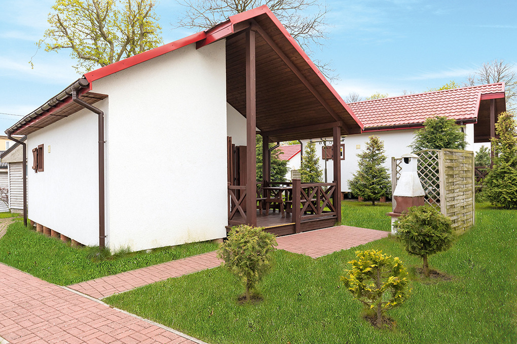 PL 37.6 Ferienhaus 2-4 Pers.: Hübsches 3-Zimmerhaus mit 34 qm Wohnfläche. Wohnküche mit Esstisch, Eckbank, Kabel-TV, kleiner Pantry-Küche (2 E-Platten). 2 Doppelzimmer. Bad/WC. Schöne überdachte Terrasse mit Sitzmöbeln. Gemauerter Grill am Haus.