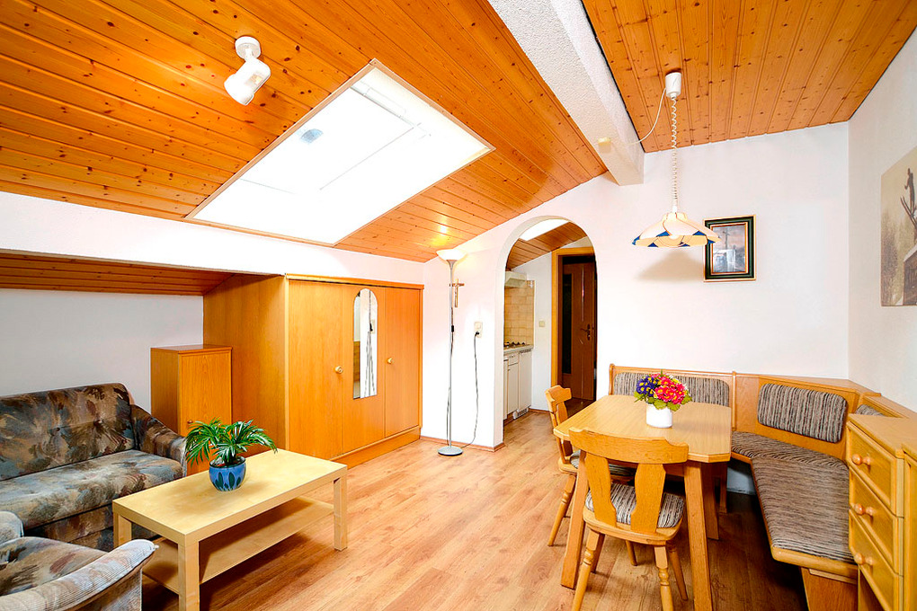 A 60.51 Wohnung 2 Pers.: 2-Zimmerwohnung mit 45 qm Wohnfläche, 1. Etage. Flur. Gemütliche Wohnküche mit Küchenzeile (Backofen), Couch, Esstisch, Eckbank, Sat-TV. Doppelzimmer. Bad: Du, Wb, WC.