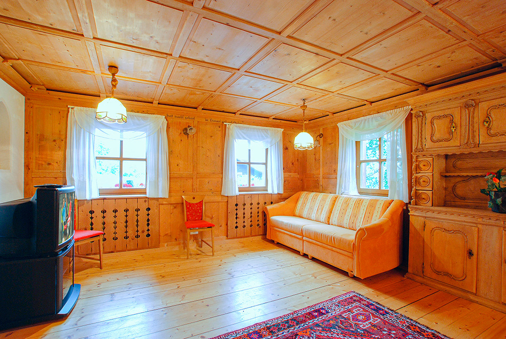 Hochparterre: Sehr großzügige, gemütliche Stube (ca. 50 qm) mit vollständig ausgestatteter Theke, mehreren Esstischen, gemütlicher Sofa-Sitzgruppe, Sat-TV. Professionell ausgestattete Gastroküche mit Gasherd, Backofen, Spülmaschine, Mikrowelle etc.. Geräumiges 4-Bettzimmer mit Doppelbett, Ausziehcouch (2 Pers.), Sat-TV. Geräumiges Bad: Du, 2 Wb, Pissoir. Separates WC.