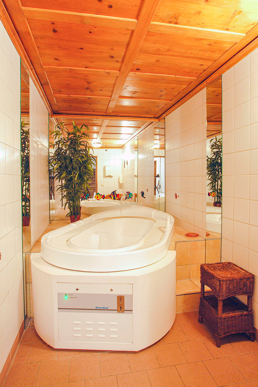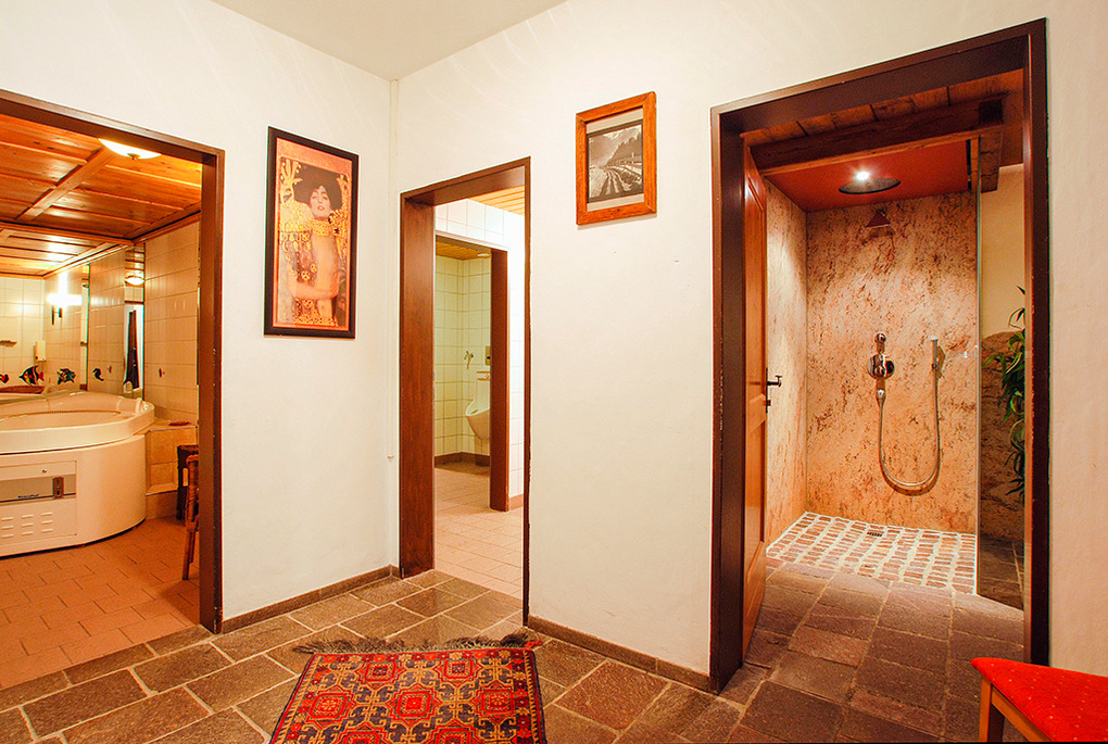 Tiefparterre: Vorraum mit Sitzgarnitur (Ausziehcouch 2 Pers.). 2 elegante Doppelzimmer mit Bad (Du, Wb, WC). Separater, exklusiver Wellnessbereich mit Sauna, Dampfsauna, Whirlpool, Erlebnisdusche, kleiner Ruheraum.