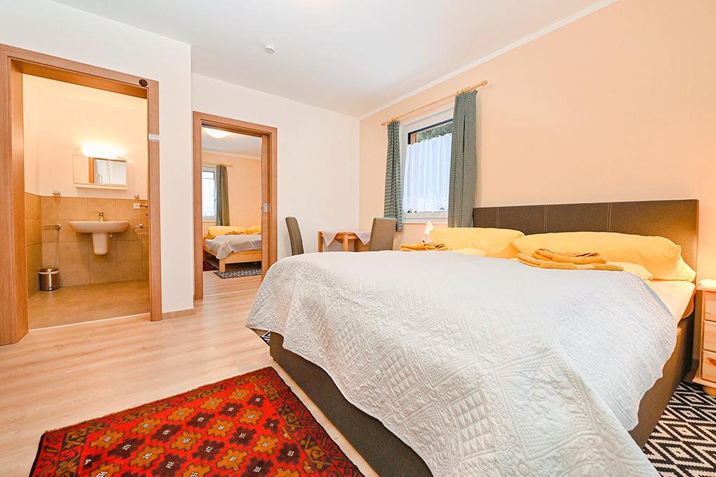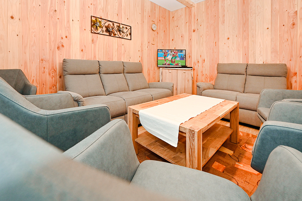 A 64.11 Chalet 8-10 Pers.: Modernes 6 1/2-Zimmerhaus mit 160 qm Wohnfläche über 2 Etagen. Parterre: Heller, gediegener Wohnraum mit Esstischen, Sitzgarnitur, Sat-TV, DVD-Player. Moderne Küche mit Esstisch, Küchenzeile (Backofen, Mikrowelle, Spülmaschine). Doppelzimmer mit Bad (Du, Wb, WC). Separates WC. Lagerraum mit Schuhregal. 1. Etage: 2 Doppelzimmer. Bad: Du, Wb, WC. Freundliches Familienapartment mit 2 Doppelzimmern, modernem Bad (Du, Wb, WC).