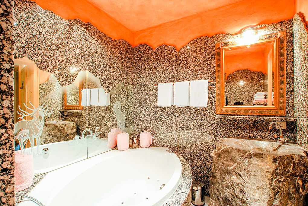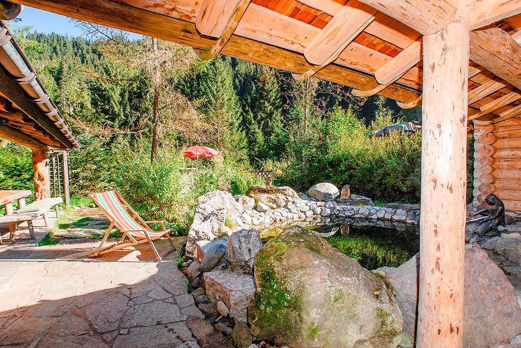 Haus: Einzigartige Jagdhütte mit luxuriöser Ausstattung. Jedes Zimmer mit eigenem Bad. Offener Kamin. Stereoanlage, Sat-TV. Sauna mit kleinem Badeteich vor dem Haus. Überdachte Terrasse mit Sitzmöbeln, Sonnenliegen, Sonnenschirm. Außengrill.