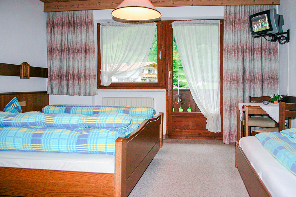 2. Etage: Einzelzimmer mit Sat-TV, Bad, Balkon. 3 Doppelzimmer mit Sat-TV, Bad, Balkon, eines davon mit französischem Bett. Drei 3-Bettzimmer mit Doppelbett, Einzelbett, Sat-TV, Bad, Balkon.