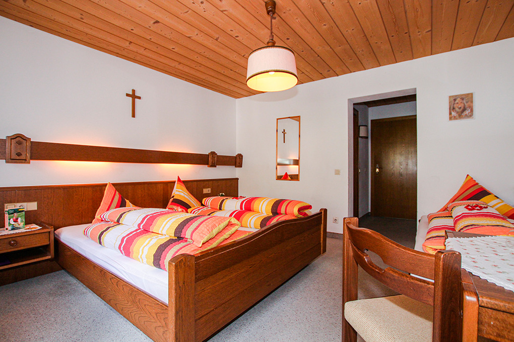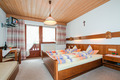 1. Etage: Doppelzimmer mit Bad. Zwei 3-Bettzimmer mit Doppelbett, Einzelbett, Sat-TV, Bad, Balkon.