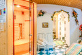 Haus: Gepflegtes 14-Zimmerhaus mit 300 qm Wohnfläche über 4 Etagen. Großzügiges Platzangebot. Kleiner Wellness-Bereich mit finnischer Sauna, Infrarotsauna, Du, WC, Ruheliegen. Fast alle Schlafzimmer mit Bad (Du, Wb, WC), TV. Zentralheizung. Skiraum mit Schuhtrockner. Großer Garten. 10 Parkplätze am Haus. Einliegerwohnung des Vermieters im Haus.