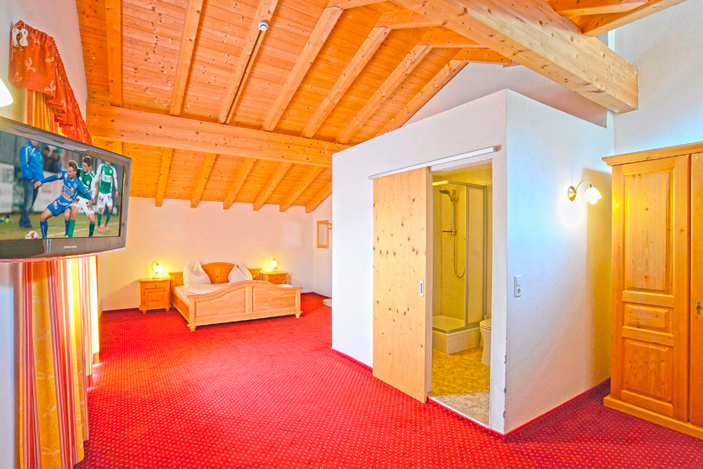 2. Etage: 3 Einzelzimmer mit TV, Bad. 3-Bettzimmer mit Doppelbett, Einzelbett, TV, Bad. 4-Bettzimmer mit Doppelbett, Schlafcouch (2 Pers.), TV, Bad. 2 großzügige, suitenähnliche Familienzimmer (40 qm) unter dem Dachgiebel mit Doppelbett, TV, Sitzecke (Schlafcouch 2 Pers.), Bad.