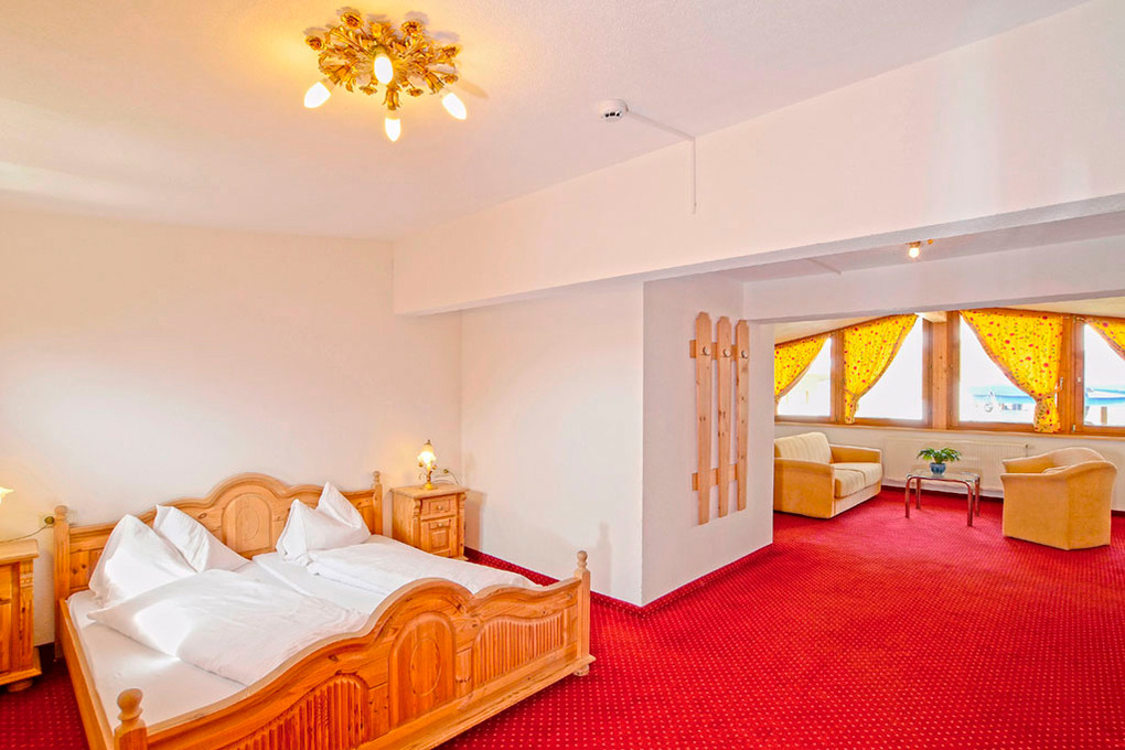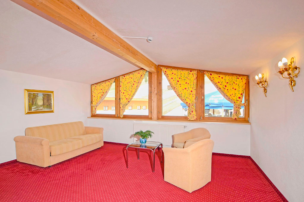 Haus: Ehemaliges Hotel, das ab sofort als komfortables Gruppenhaus vermietet wird. Hochwertiges Ferienhaus mit 19 Zimmern, 450 qm Wohnfläche über 3 Etagen. Es bietet 2 großzügige Gaststuben mit rustikaler Holzbalkendecke und eine schöne Panoramaterrasse mit herrlichem Blick auf die Pitztaler Alpen. Schöne Schlafzimmer, alle mit Sat-TV, Bad (Du, Wb, WC), fast alle mit Balkon. Großer Saunabereich mit Ruheraum (Sauna gegen Gebühr). Sportgeschäft mit Haus.
