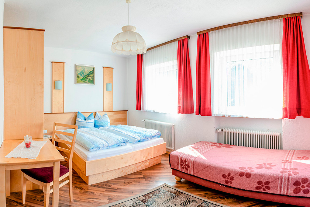 2. Etage: 3 Doppelzimmer mit Bad, zwei davon zusätzlich mit Balkon. 2-Bettzimmer mit Einzelbetten. Zwei 3-Bettzimmer mit Doppelbett, Einzelbett, Bad, Balkon. 4-Bettzimmer mit 2 Etagenbetten, Bad.