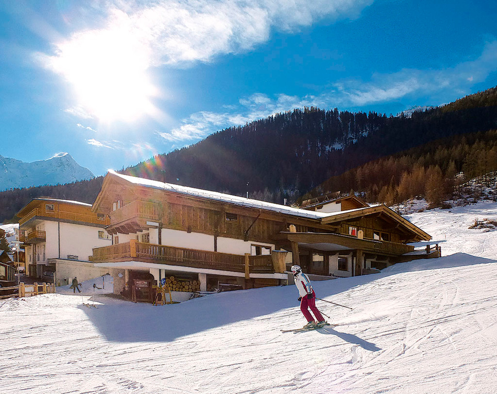 Ort: Sölden. Absolute Top-Lage am oberen Ortsrand, Ortsteil Innerwald. Die Talabfahrt vom Gletscher (2000 Höhenmeter, 14 km Länge) führt direkt an den Chalets vorbei. Skiabfahrt vom und bis zum Haus! Ortsmitte 1,6 km. Personenaufzug ins Zentrum mit Geschäften, Restaurants 400 m (Öffnungszeiten täglich 8.30 - 22 Uhr).