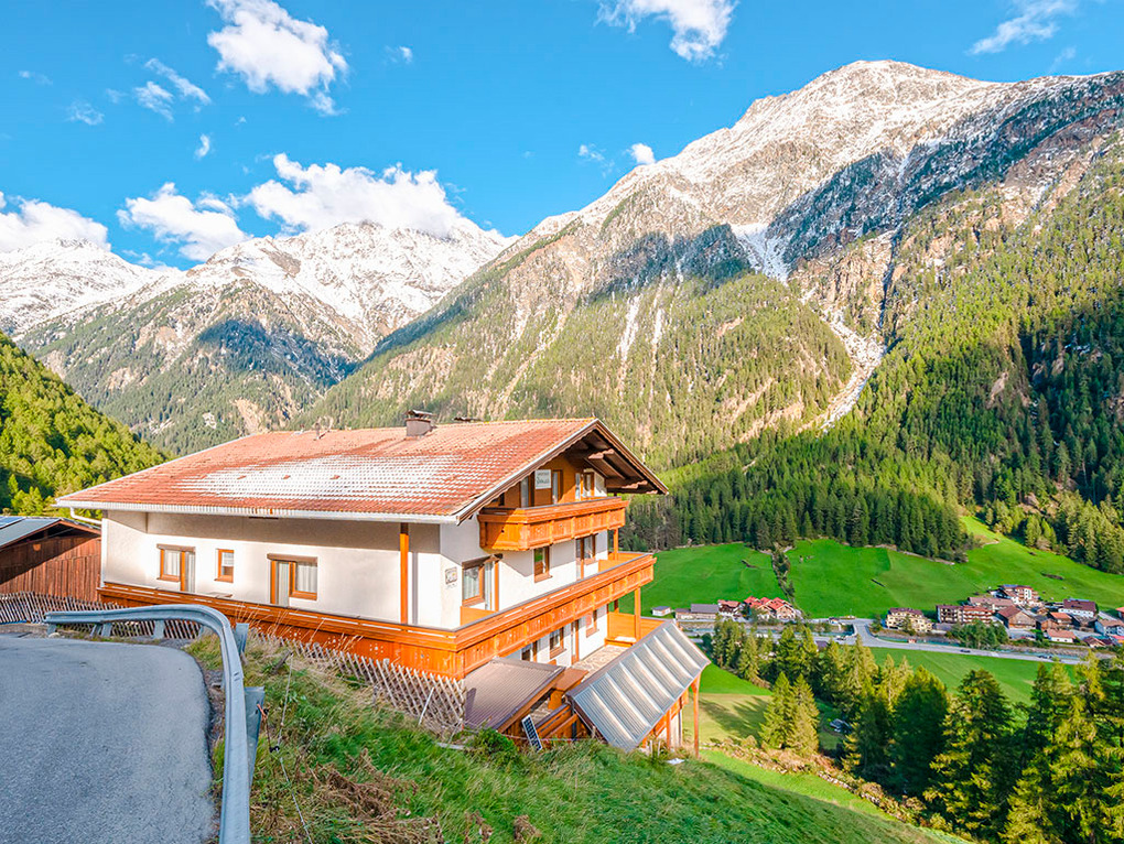 Ort: Sölden, Ortsteil Leithe. Ruhige Lage in Nähe der Talabfahrt des Giggijochs. Skiabfahrt von und bis in Hausnähe (400 m) bei entsprechender Schneelage (beschneite Talabfahrt). Skibus 10 m. Giggijochbahn 1,9 km.
