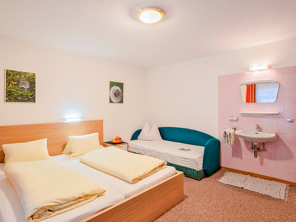 2. Etage: Zwei 3-Bettzimmer mit Doppelbett, Einzelbett, Wb, Balkon. Vier Doppelzimmer mit Wb. Drei Bäder: Du, Wb, WC.