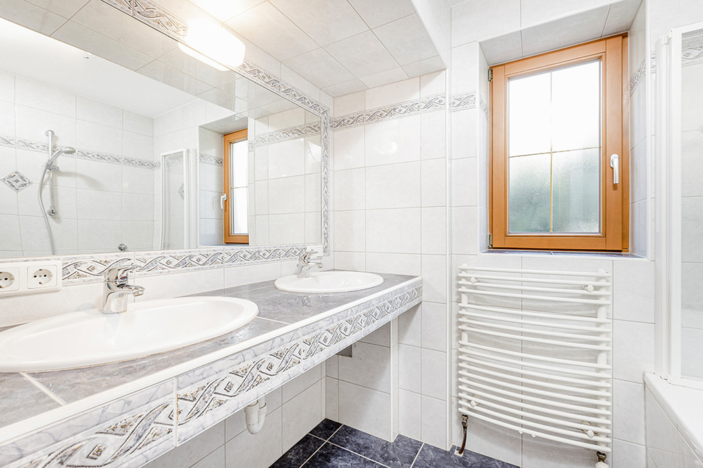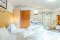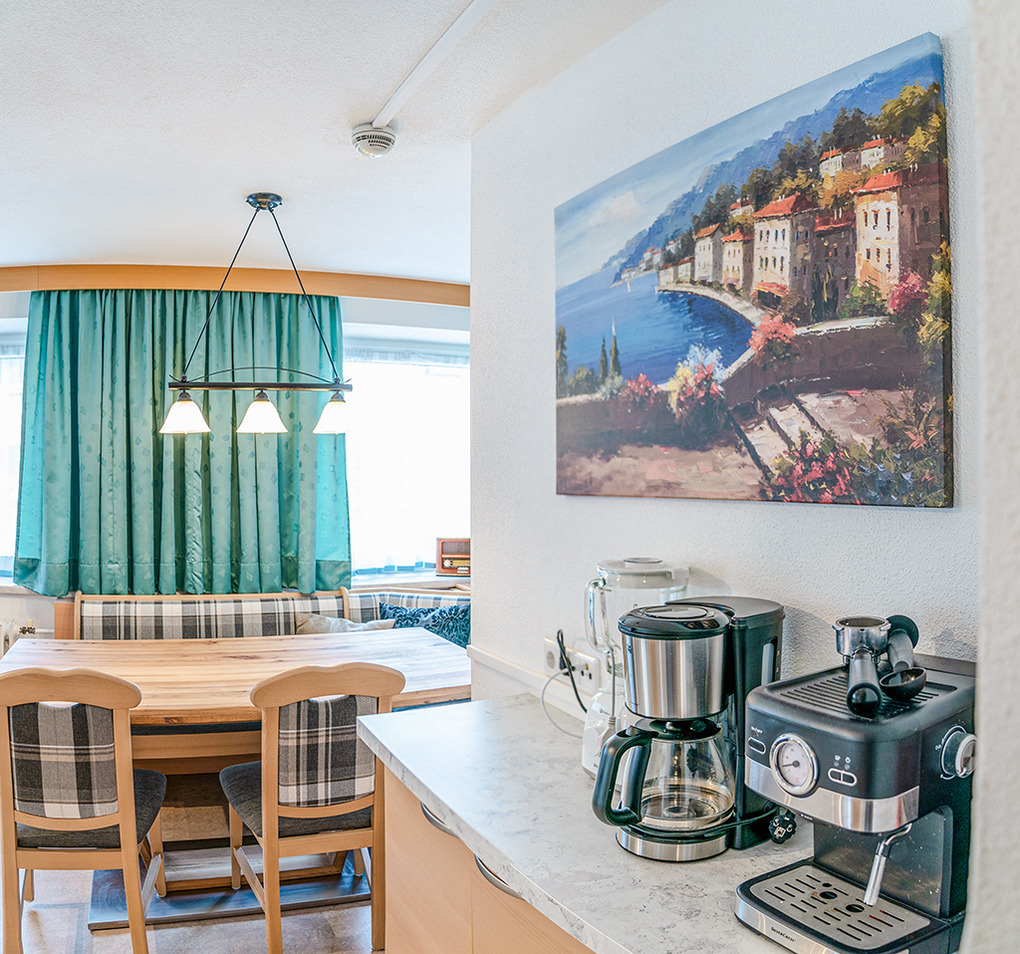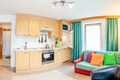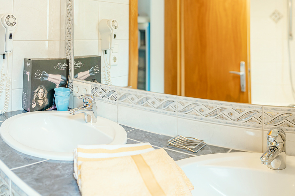 A 154.9 Wohnung 1-10 Pers.: Zwei 2 1/2-Zimmerwohnungen mit insgesamt 140 qm Wohnfläche. Bei Anmietung beider Wohnungen des Typs A 154.8 und A 154.8A ergibt sich eine Wohneinheit über 2 Etagen zum Alleinbewohnen. Gemeinsames Essen im Wohn-/Essraum von A 154.8. Ausstattung: Gemütlicher Wohn-/Essraum mit Esstisch, gut ausgestatteter Küchenzeile (Backofen, Mikrowelle, Spülmaschine), Sat-TV. Separater Wohn-/Schlafraum mit Couchgarnitur (Ausziehcouch 1 Pers), Sat-TV, Esstisch, Eckbank, Küchenzeile. (Backofen, Mikrowelle, Spülmaschine). Zwei Doppelzimmer mit Sat-TV, Du, Wb, Balkon. Doppelzimmer mit Du, Wb, WC. 3-Bettzimmer mit Doppelbett, Schlafcouch, Balkon. Bad: 2 Wb, Bw/ Du. Separates WC.