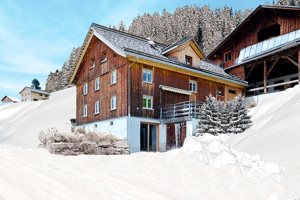Haus: Typisches voralberger Bauernhaus, in 2018 zum Ferienhaus renoviert. Schöne Ferienwohnung mit Kachelofen und Sauna. Urig gemütliche Atmosphäre durch Holzvertäfelung in allen Räumen. Kostenloser Internetzugang (W-Lan). Zentralheizung. Ski-/Schuhraum. Nichtraucherwohnung. Pkw-Stellplätze am Haus.