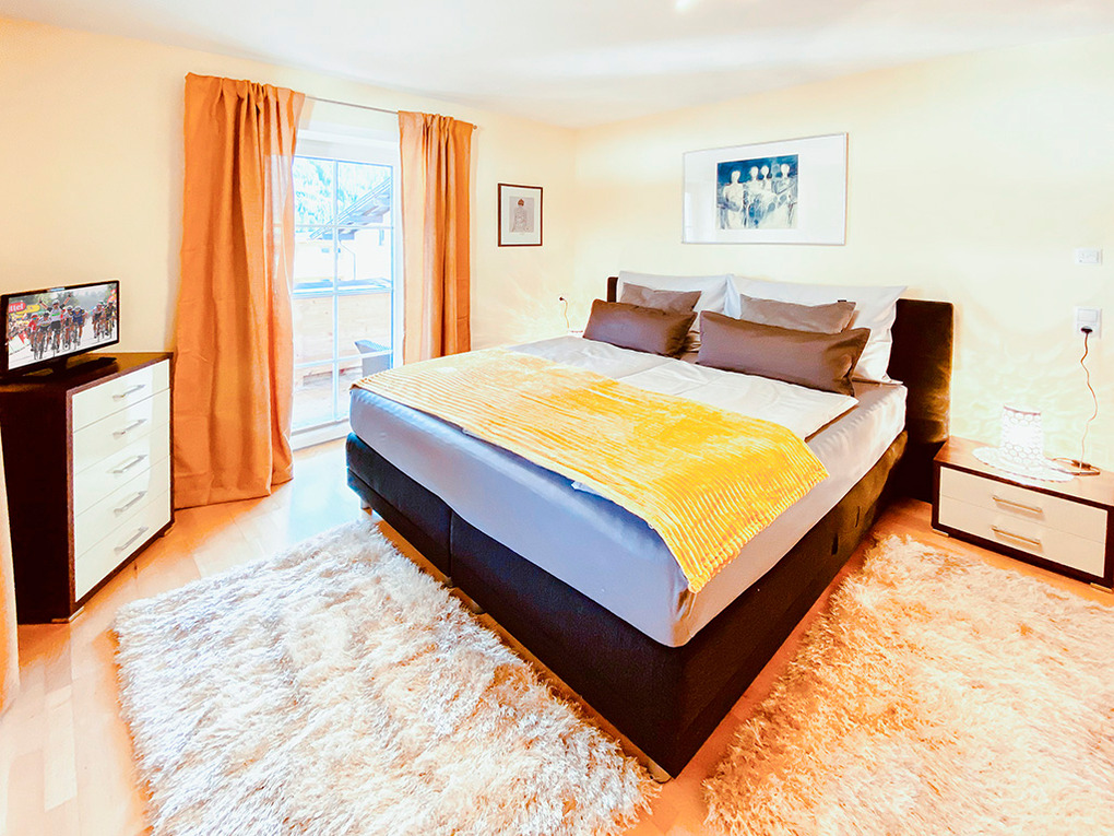 A 257.81 Ferienhaus 4-6 Pers.: Komfortables 3 1/2-Zimmer-Reihenhaus mit 110 qm Wohnfläche über 2 Etagen. Separater Eingang. Parterre: Großzügiger Wohn-/Essraum mit Sitzgarnitur vor dem Sat-TV, Esstisch, Eckbank, Kamin. Vorratsraum mit Schuhtrockner. Moderne Küche mit hochwertiger Küchenzeile (Backofen, Kaffeevollautomat, Spülmaschine.). Separates WC. 1. Etage: Zwei 3-Bettzimmer mit Doppelbett, Einzelbett, Sat-TV, Balkon. Zwei Bäder, das eine mit Du, Eck-BW, Wb, das andere mit Du, Wb. Separates WC. Vom Wohnraum Zugang zur Terrasse mit Liegen, Whirlpool, schönem Bergblick.