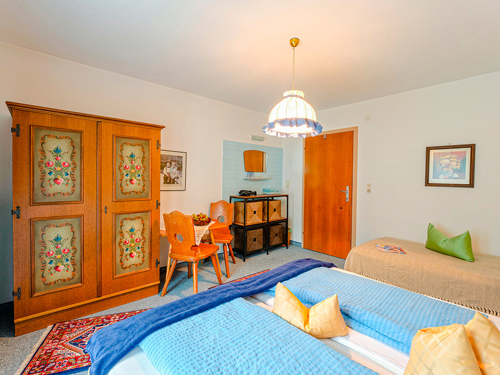 A 260.16 Wohnung 4-6 Pers.: 3 1/2-Zimmerwohnung mit 85 qm Wohnfläche, 1. Etage. Freundlicher Wohn-/Essraum mit Esstischen für 12 Personen, Kabel-TV, Küchenzeile (4 Pl. E-Herd, Backofen, Mikrowelle, Spülmaschine), Balkon mit herrlichem Blick auf die Bergwelt. Zwei 3-Bettzimmer mit Doppelbett, Einzelbett, Wb, Balkon. Bad: Bw/Handdusche, Wb, WC.