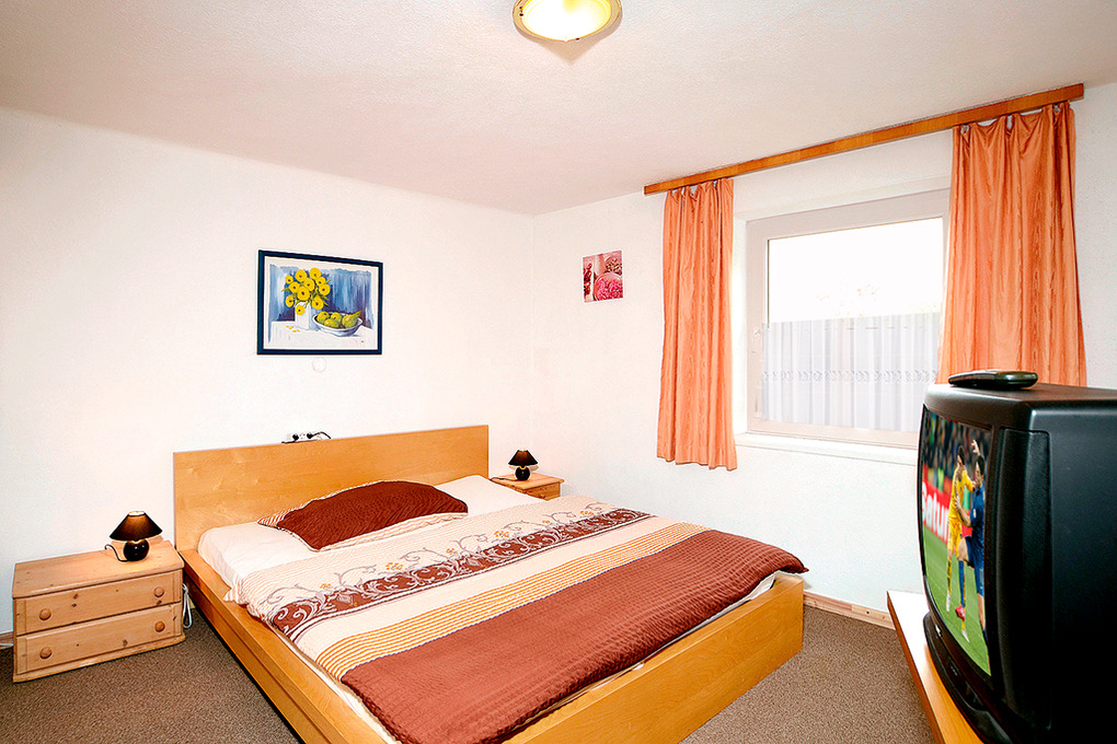Parterre: Großer heller Aufenthaltsraum mit Esstischen, Sat-TV, Einbauküche (Backofen, 2 Spülmaschinen). Doppelzimmer. Kleiner gemütlicher Aufenthaltsraum mit Kaminofen, Sat-TV. Bad: 2 Duschen. 2 sep. WC. Sauna, Infrarotkabine mit Dusche, Waschmaschine, Trockner.