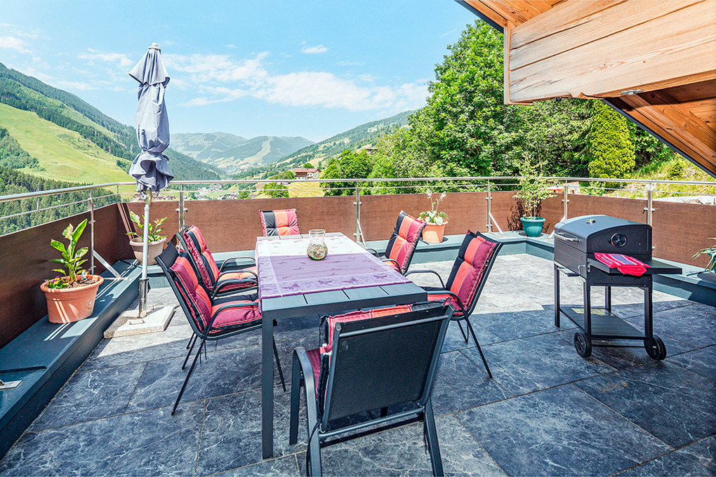 Ort: Saalbach, Ortsteil Jausern. Ruhige, sonnige Hanglage oberhalb des Ortes auf 1000 m Höhe. Herrlicher Blick ins Glemmtal und auf die gegenüberliegende Jausern Skiabfahrt. Ortsmitte Saalbach 4,9 km. Gondel Schönleitenbahn 1,2 km.