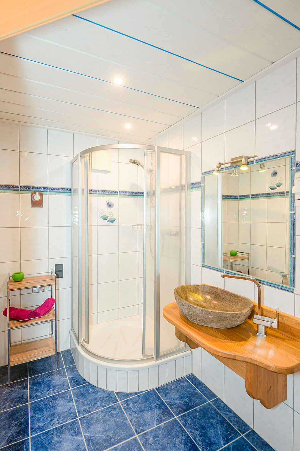 2. Etage: Fewo 4-6 Pers.: Großzügiger bis in den Dachgiebel ausgebauter Wohn-/Essraum mit moderner Einbauküche (Backofen mit Induktionsherd, Mikrowelle, Spülmaschine), Esstische, Couch, Balkon. Separater Gefrierschrank. 4-Bettzimmer mit Doppelbett, Ausziehcouch. Doppelzimmer mit Balkon, Bad (Du, Wb, WC). Bad: Du, Eck-Bw, Separates WC. Fewo 2-6 Pers.: Wohn-/Schlafraum mit Ausziehcouch (2 Pers.), moderner Küchenzeile, Doppelzimmer. Doppelzimmer mit Balkon. Bad: Du, Wb, Separates WC. Großzügige Dachterrasse mit hochwertigem Grill.