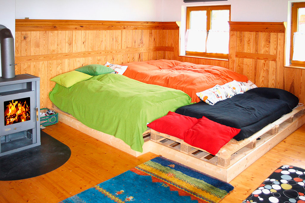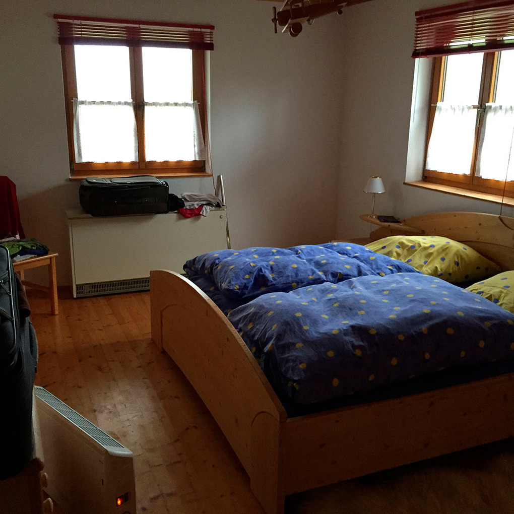 Parterre: Doppelzimmer. Großes 4-Bettzimmer mit 2 Schlafsofas (jeweils Ausziehcouch 2 Pers.), Sat-TV, Kaminofen. Bad: Du, Doppel-Wb, WC, Waschmaschine, Trockner. Sauna.