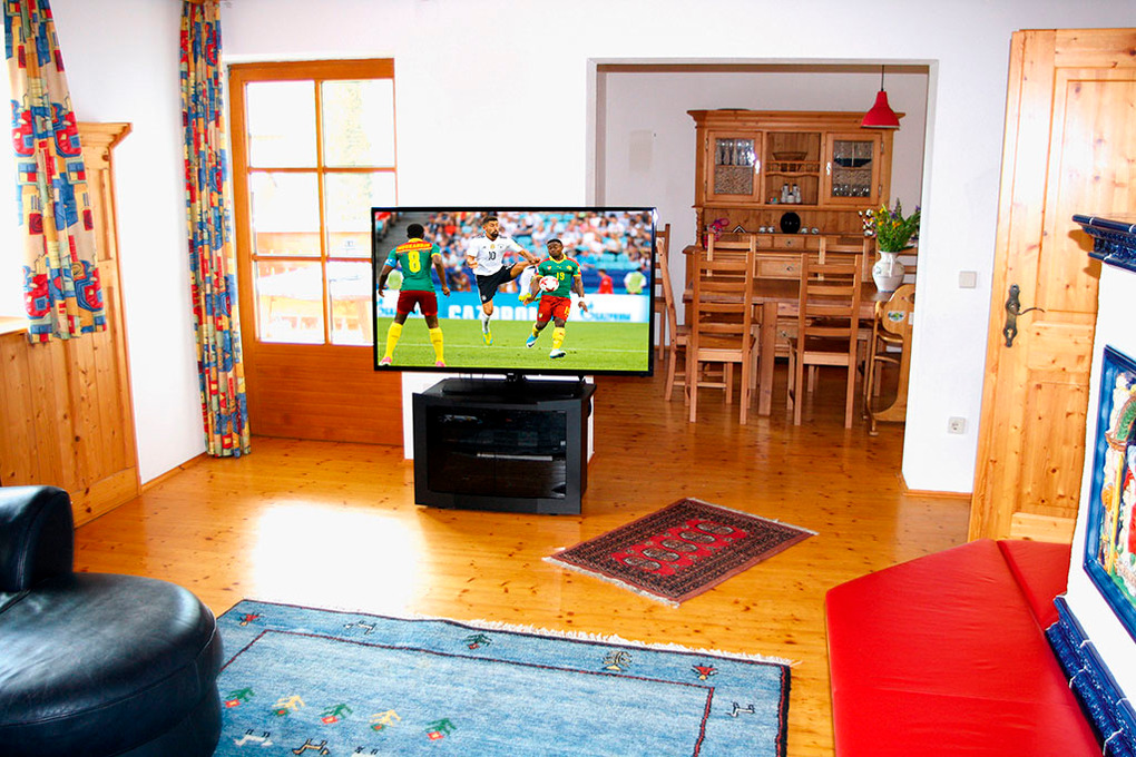 Haus: Rustikales Ferienhaus mit Sauna, Kamin- und Kachelofen. Großzügiges 8 1/2-Zimmerchalet mit 300 qm Wohnfläche über 3 Etagen (Nichtraucherhaus). Zugang direkt in die 1. Etage (Hanglage). Großes Platzangebot. Gemütliches Ambiente durch Holzvertäfelung in vielen Räumen. Kostenloser Internetzugang über W-Lan. Zentralheizung. Parkplätze am Haus.