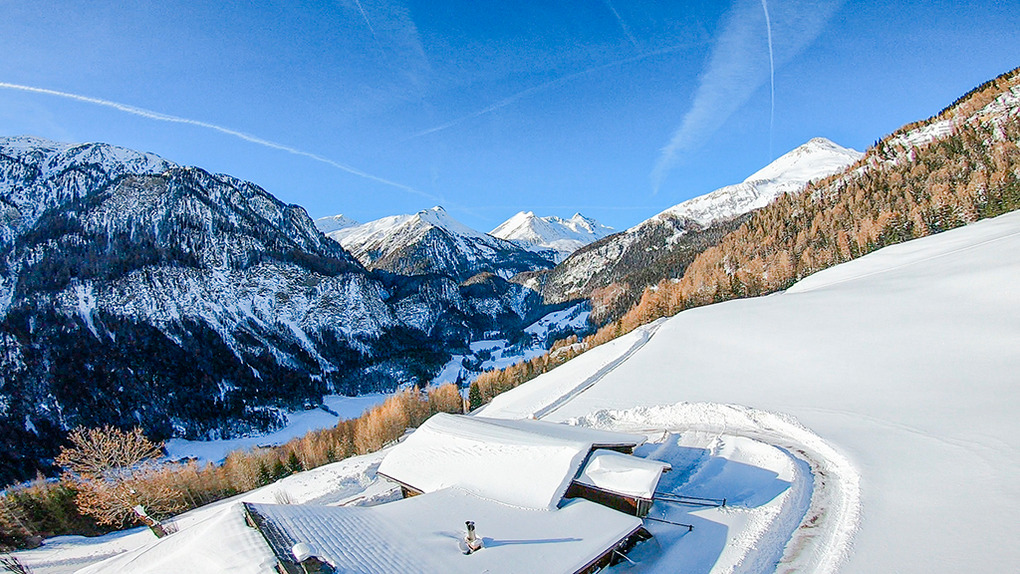 Ort: Heiligenblut. Ruhige Hanglage oberhalb des Ortes mit herrlichem Blick ins Tal und auf die Gipfel der Hohen Tauern. Ortsmitte 2 km. Gondel 2 km.
