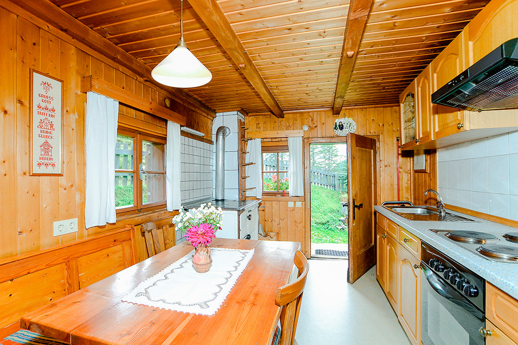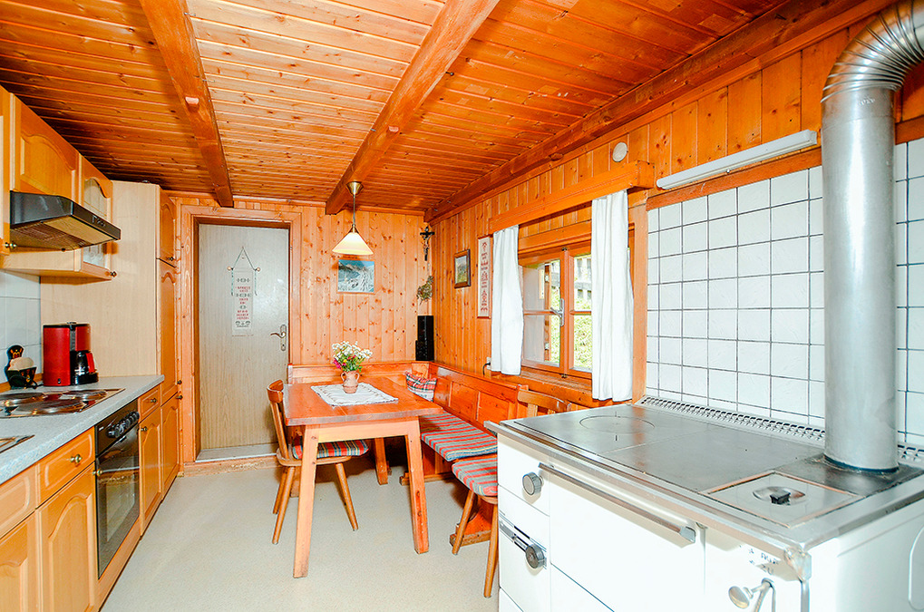 A 650.19 Almhütte 1-4 Pers.: Parterre: Gemütliche Wohnküche mit Essecke, E-Herd (Backofen), zusätzlichem Holzherd. Bad: Du, Wb, WC. 1. Etage: 2 Doppelzimmer.