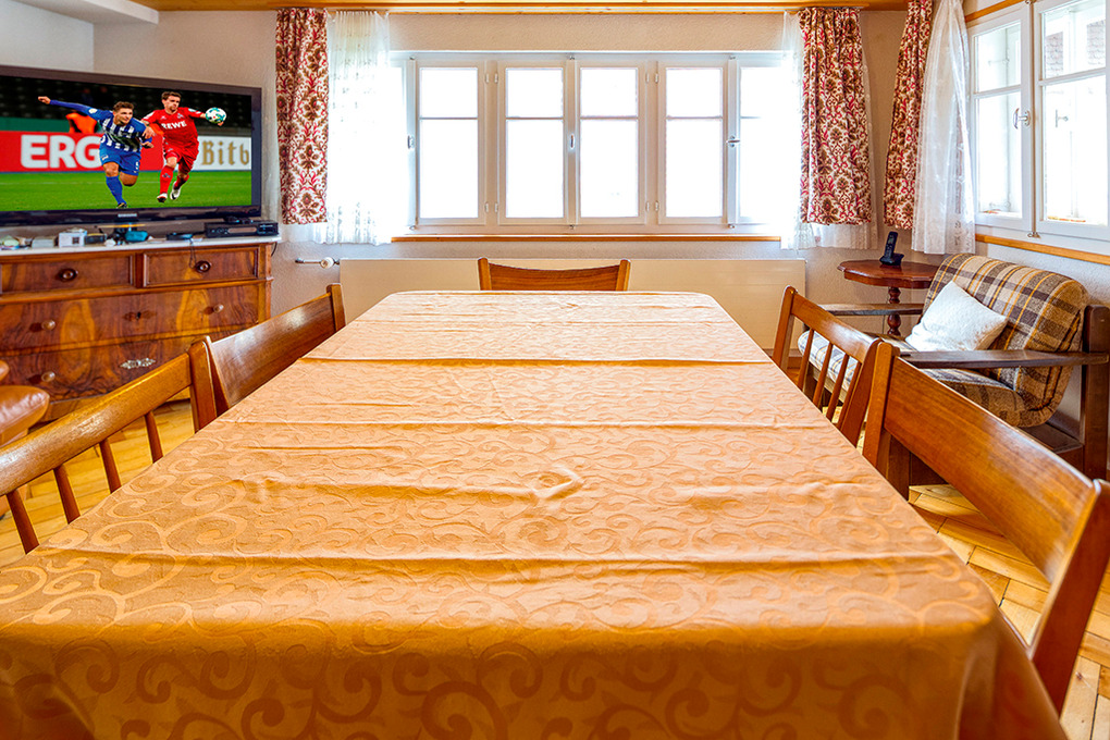 Haus: Regionaltypisches Ferienhaus mit funktionaler Ausstattung. Zwei Chalethälften, die einzeln oder gemeinsam gebucht werden können. Bei Buchung beider Haushälften ergibt sich ein Ferienhaus zum Alleinbewohnen. 10 1/2-Zimmerhaus mit 155 qm Wohnfläche über 3 Etagen. 2 separate Eingänge, Verbindungstür zwischen beiden Hausteilen nur in der 2. Etage. Aufgrund der Größe der Essräume empfehlen wir eine Belegung mit max. 12-14 Personen.