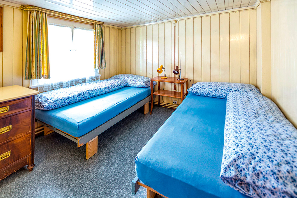 2. Etage (Dachschrägen): Kleines 1-Bettzimmer. Doppelzimmer. Zwei 2-Bettzimmer. Flur mit Durchgang zwischen beiden Haushälften.