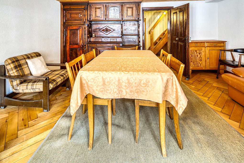 Uriges Holzhaus mit schon älterer aber gepflegter, gemütlicher Einrichtung, niedrigen Zimmerdecken (ca. 1,90 m). Internetzugang über W-Lan. Jede Haushälfte verfügt über einen eigenen Eingang, Waschmaschine, Trockner, Skiraum. Zentralheizung. Nichtraucherhaus. Nur ein reservierter Pkw-Stellplatz für beide Haushälften. Öffentliche Tiefgaragenplätze im Ort (Gebühr) oder kostenfrei parken im Nachbarort Hospental.