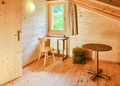 Parterre: Flur mit Garderobe, Schuhregal. Sehr schöner, heller, teils bis zum Dachgiebel ausgebauter Wohnraum (27 qm) mit großen Panoramafenstern, gemütlicher Sofa-Sitzecke am Kamin, TV, Esstisch. Moderne Küche mit Backofen, Spülmaschine. Zwei Doppelzimmer. Kleines Doppelzimmer mit franz. Bett. Bad: Bw/Du, Wb, WC.