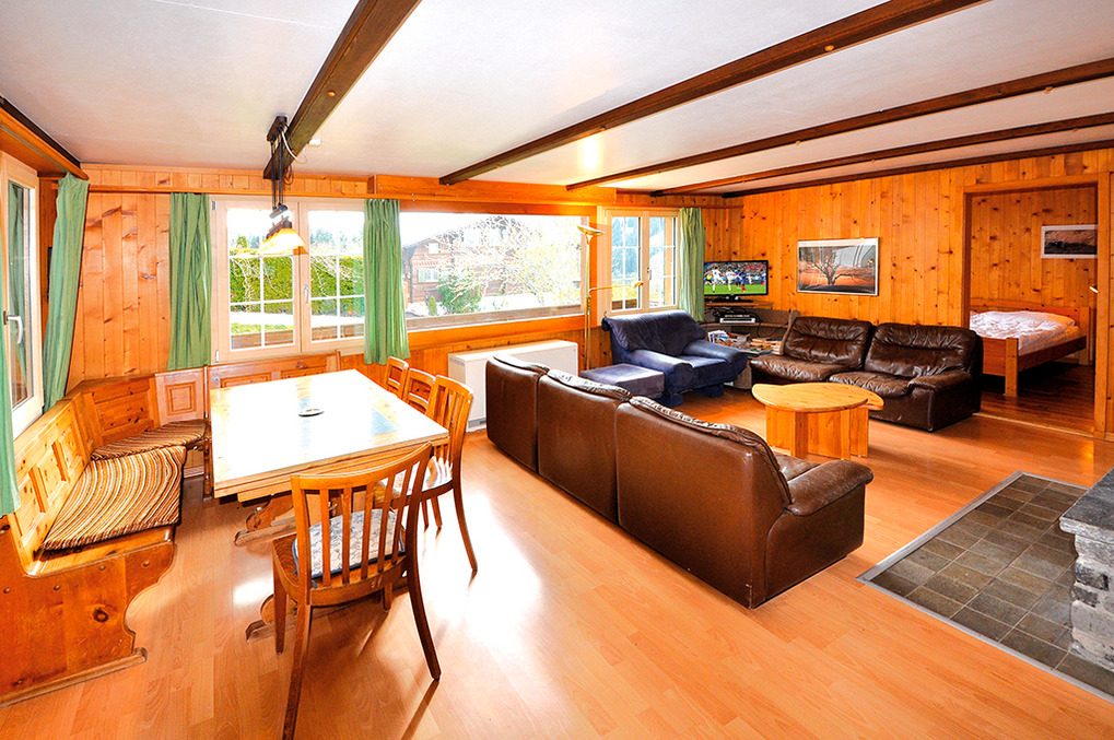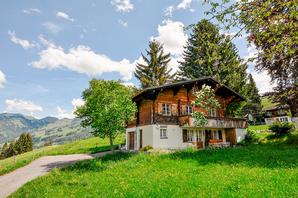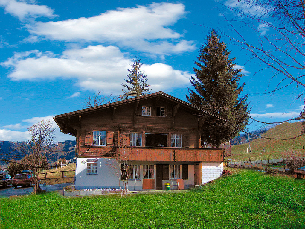 Ort: Zweisimmen bei Gstaad im Berner Oberland. Ruhige Lage oberhalb des Ortes, umgeben von Almwiesen. Blick ins Tal und auf die umliegende Bergwelt. Schöne Wanderwege beginnen direkt vor der Haustür! Ortsmitte mit Freibad, Bergbahnen 2,9 km.