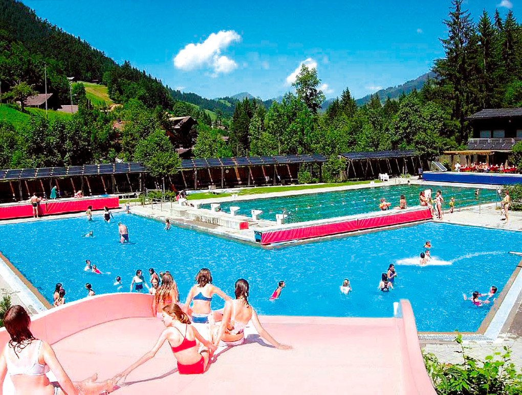 Ort: Zweisimmen bei Gstaad im Berner Oberland. Der familienfreundliche Ferienort liegt auf 1000 m Höhe und bietet alles für einen perfekten Urlaub in den Bergen: großes Freibad mit Kneipp-Anlage, Kinder-Spielbereich und Beach-Volleyball-Feld, Tennisplätze, Minigolf, Trottinett (Tretroller) -Bahn, Rafting, Canyoning, Fitness-Parcours, etc... Das herrliche Wandergebiet bietet u.a. 5 Panorama-Höhenwege aller Schwierigkeitsstufen. 150 km Mountain-Bike-Routen. Lohnende Ausflugspunkte können zu Fuß oder per Bergbahn erreicht werden, Kinder bis 9 Jahren fahren gratis! Möglichkeit zum Fischen, Wildwasserfahren.