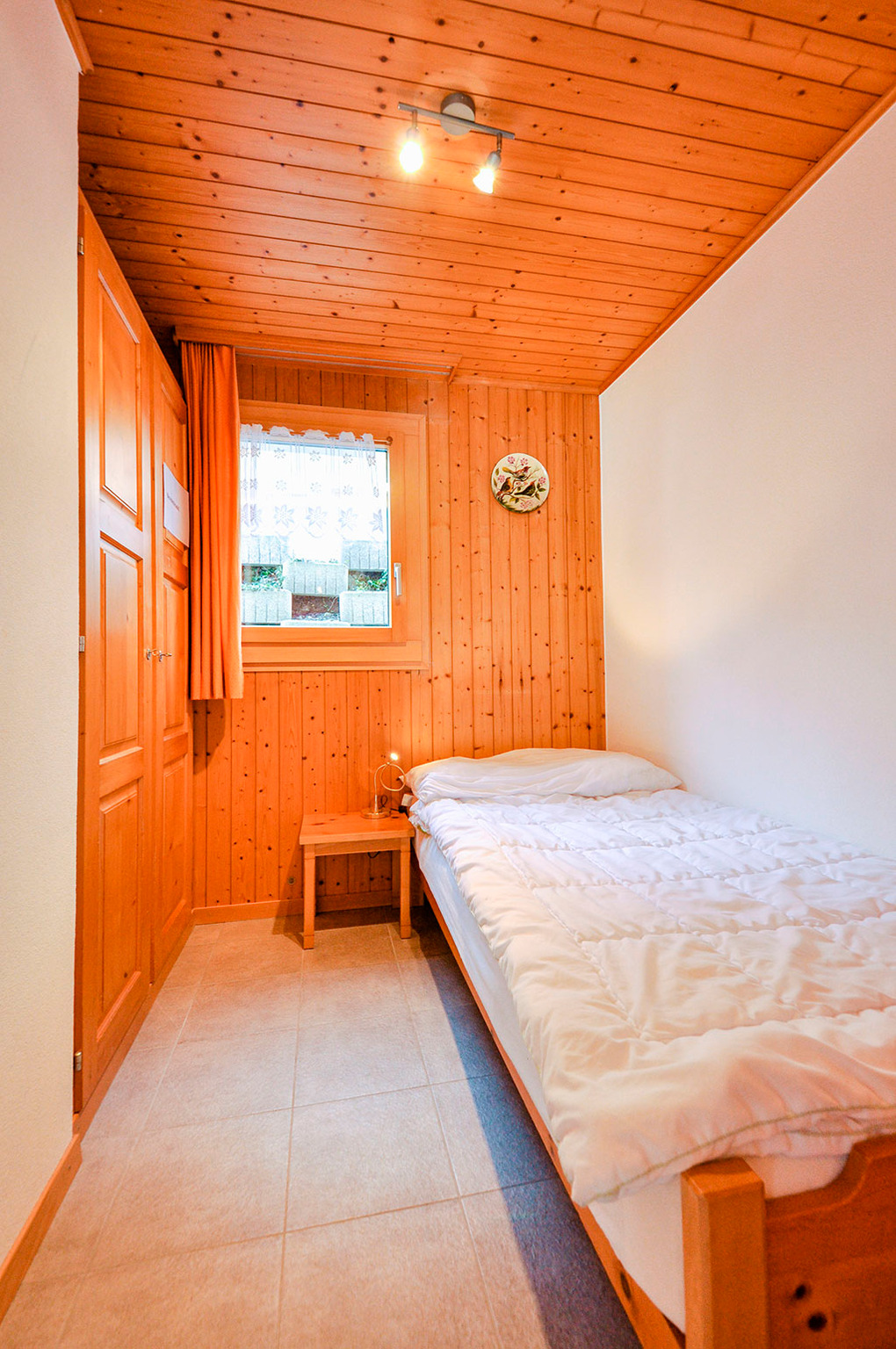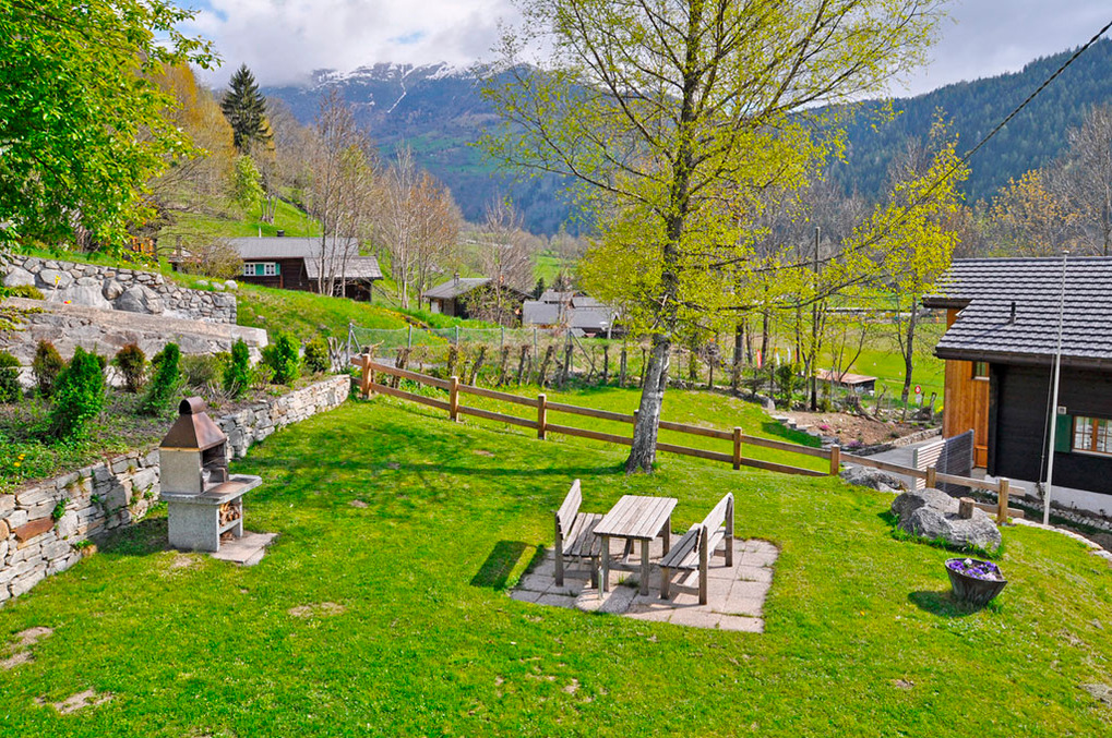Haus: Schönes Chalet mit zwei nahezu identischen Ferienwohnungen. Rustikal-gemütliche Einrichtung, Holzvertäfelung in allen Räumen. Internetzugang über W-Lan. E-Nachtspeicherheizung. 120 l Warmwasser pro Etage über 2 E-Boiler. Schön gestalteter Garten mit 2 Sitzecken, Gartenmöbeln, Schaukel (jeweils gemeinschaftliche Nutzung).