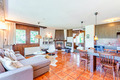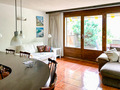 Parterre: Wohn-/Essraum (30 qm) mit Couchgarnitur, Kamin, Kabel-TV, DVD, Bluetooth Lautsprecher, Esstisch, Einbauküche (Backofen, Mikrowelle, Spülmaschine). Bad: Du, Wb, WC.