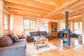 1. Etage: Ansprechender, großzügiger Wohn-/Essraum mit Kaminofen, Couchgarnitur, Sat-TV, DVD, Esstisch, moderner Einbauküche (Backofen, Mikrowelle, Spülmaschine).
