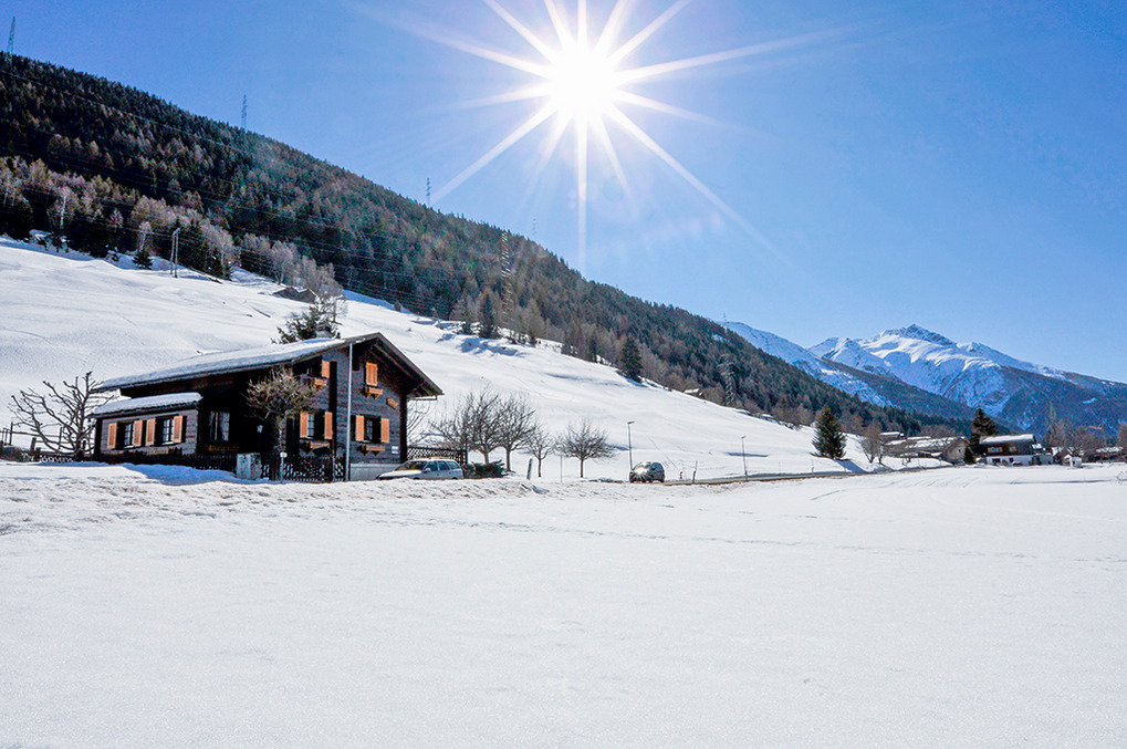 Ort: Fiesch, Ortsteil Ernen. Ruhige, alleinstehende Lage. Schöner Blick auf die umliegende Bergwelt. Ortsmitte Fiesch 5 km. Seilbahn Fiesch 4,5 km.