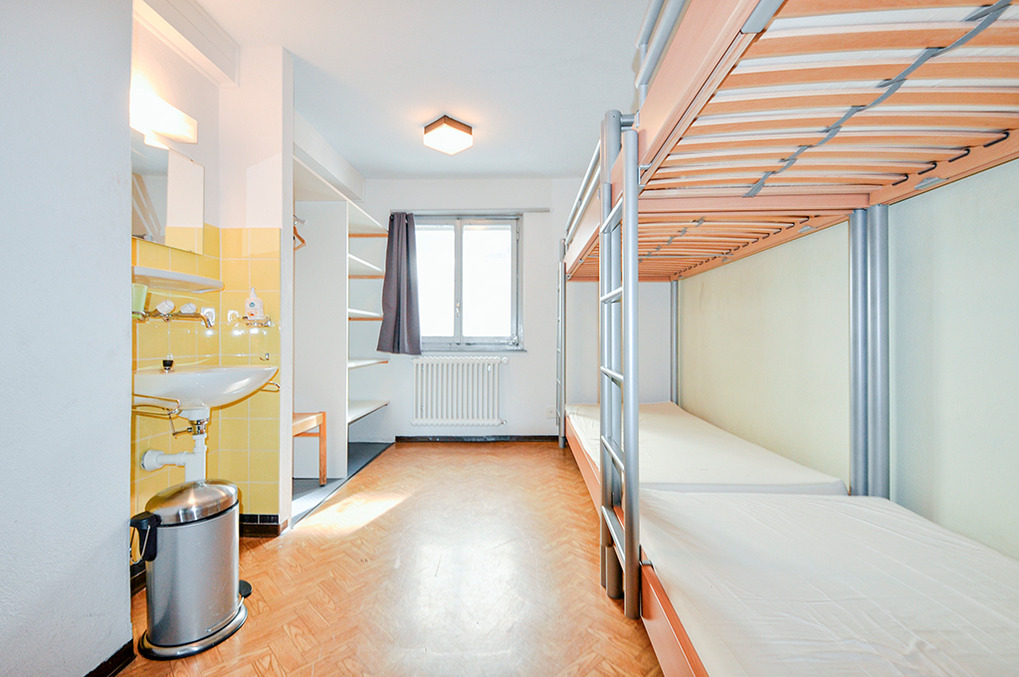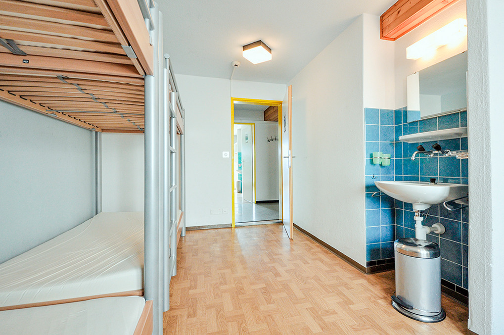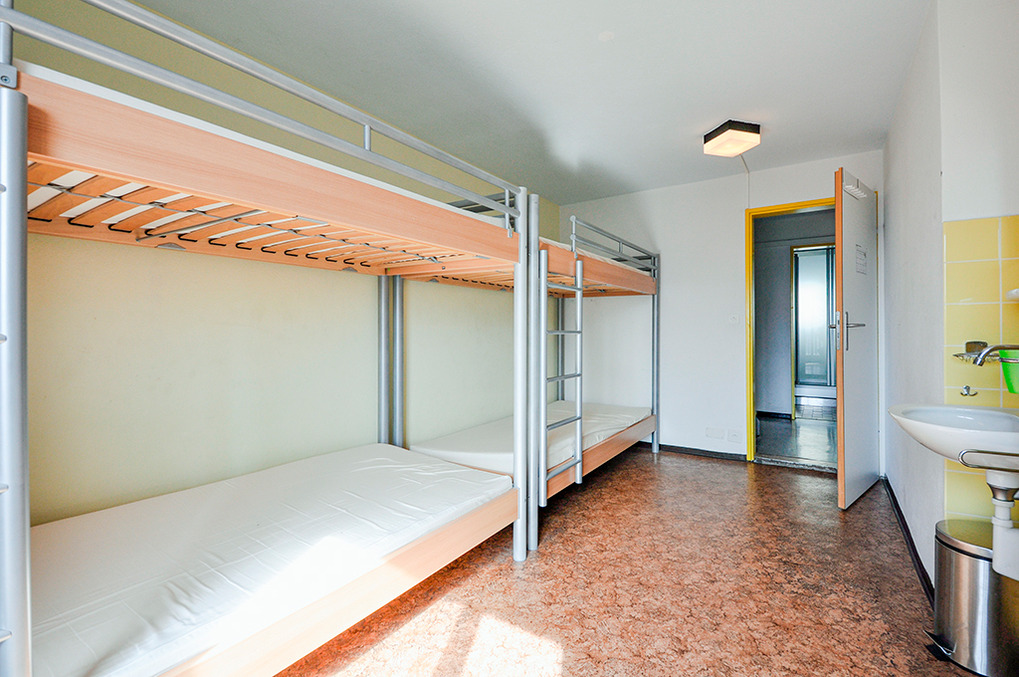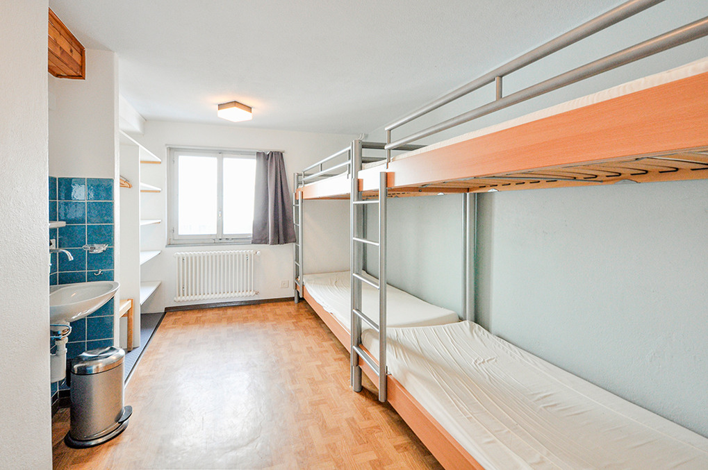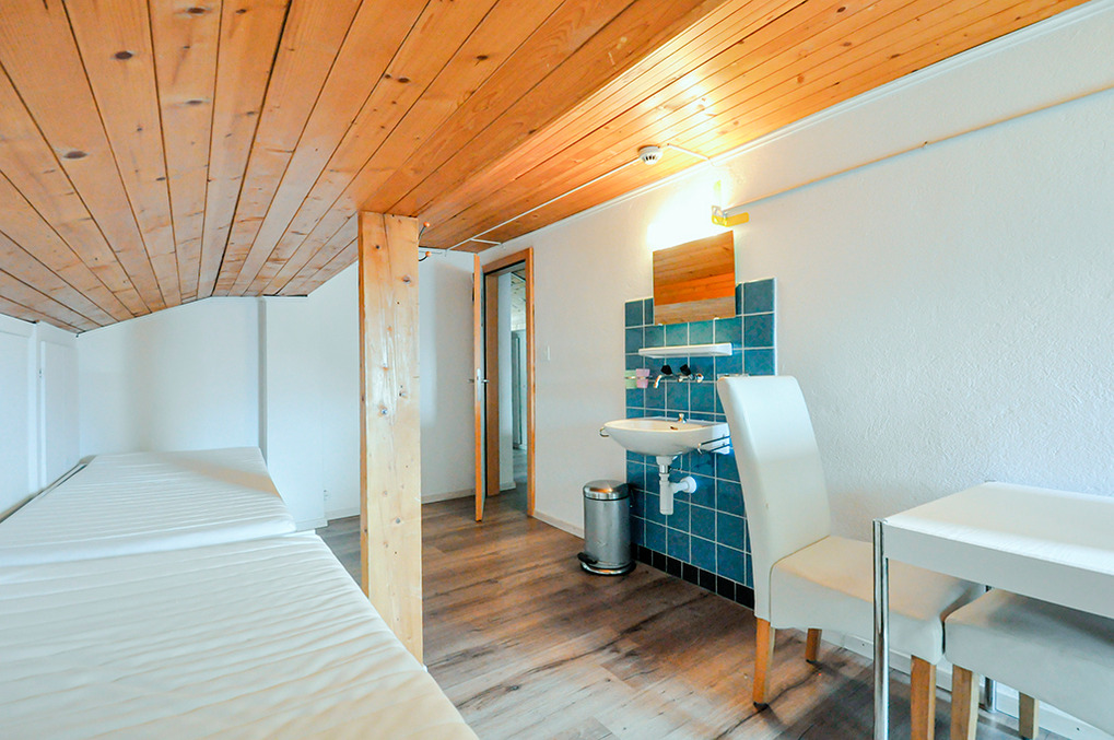 2. Etage: Sieben 4-Bettzimmer, jeweils mit zwei Etagenbetten, Wb. Separates Bad: 2 Du, 2 Wb, 2 WC. Weiteres Bad: 3 Du, 2 Wb, 2 Pissoirs, WC.
