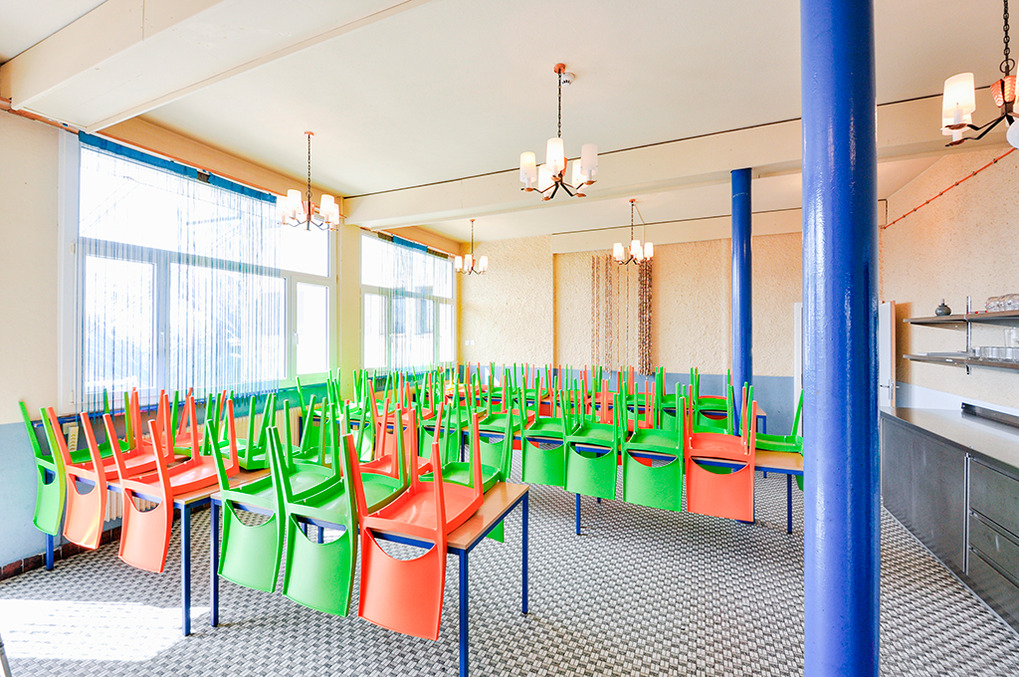 1. Etage: Aufenthaltsraum mit Sitzmöglichkeiten, Sat-TV, Balkon. Vier 4-Bettzimmer, jeweils mit zwei Etagenbetten, Wb. 6-Bettzimmer mit drei Etagenbetten, Du, Wb. Separates Bad: Du, 2 Wb, WC. Weiteres Bad: Du, Wb, 2 Pissoirs, WC.