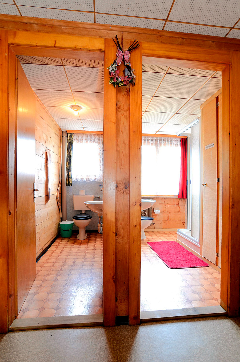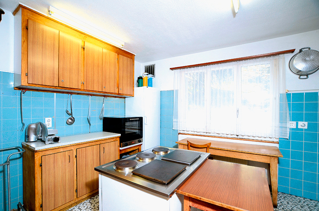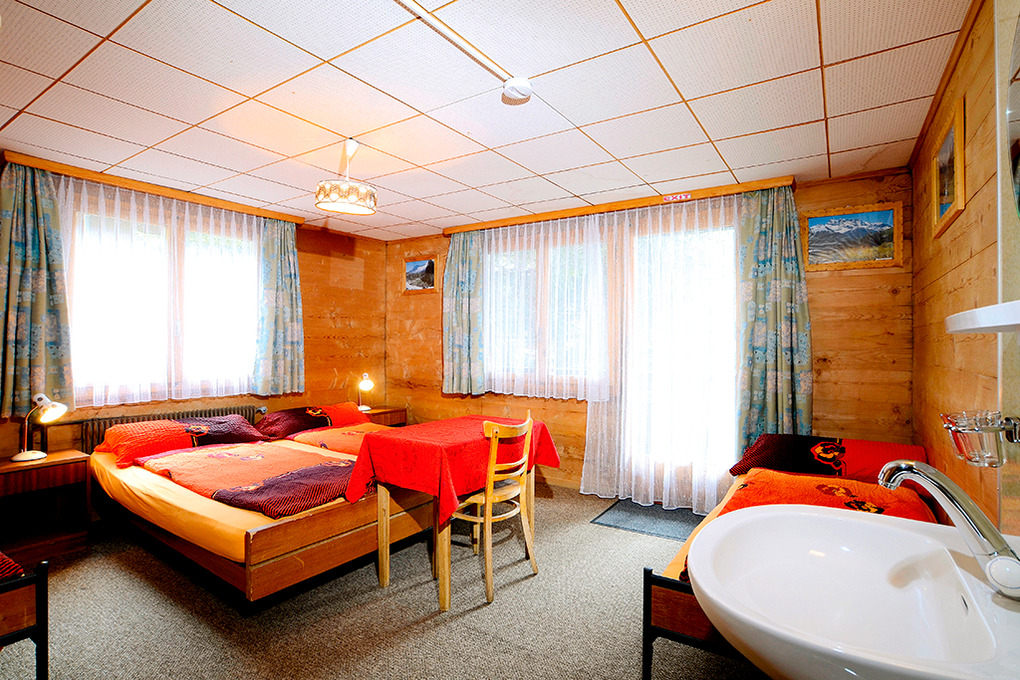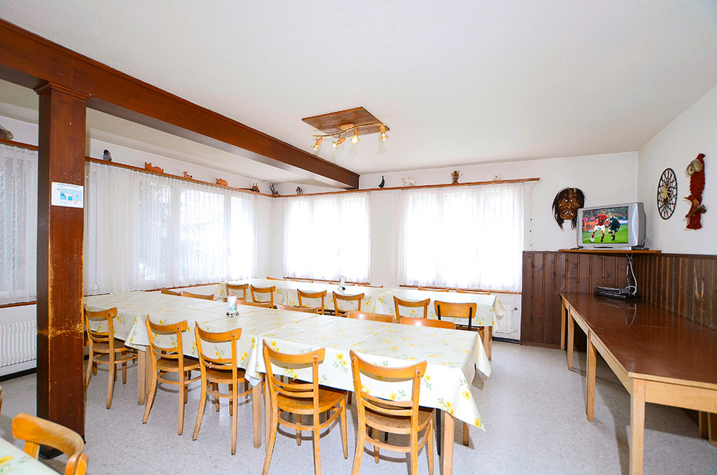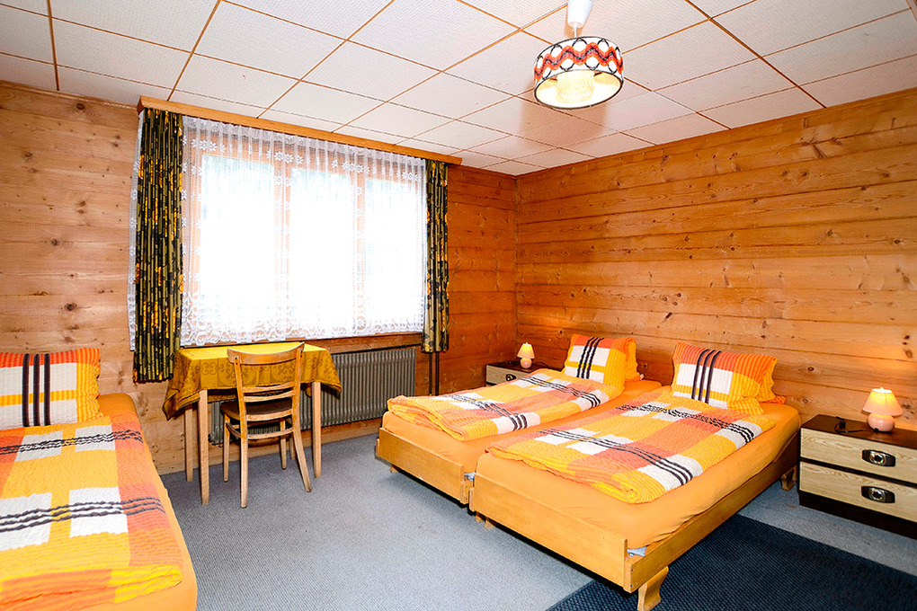 Haus: Geräumiges Schweizer Holzchalet. 2 Gruppenräume. Alle Schlafzimmer mit Wb. Kostenloser Internetzugang über W-Lan. Öl-Zentralheizung. Separate Wohnung des Vermieters in der 1. Etage.
