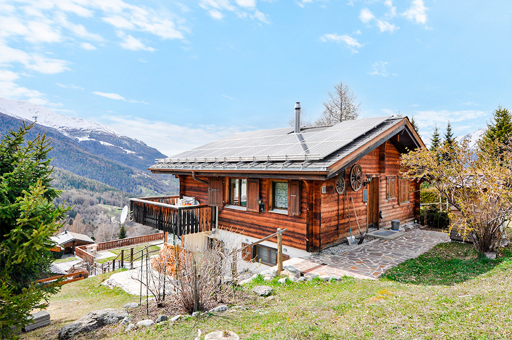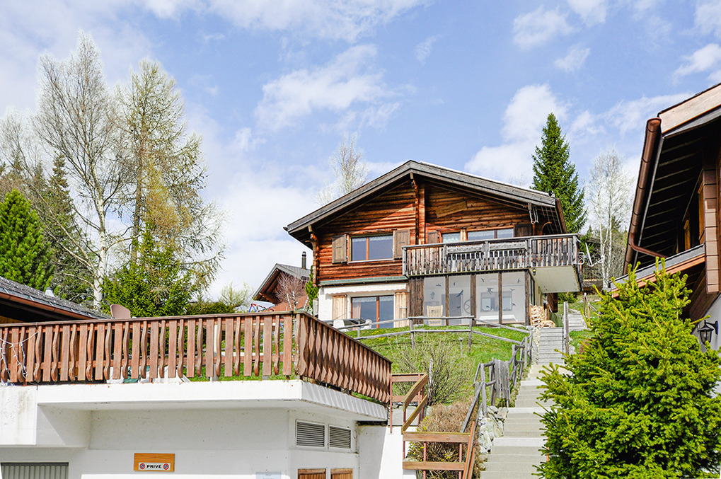 Ort: Bürchen, oberhalb von Visp im Rhône-Tal gelegen. Ruhige Lage in einer Chalet-Siedlung am oberen Ortsrand mit schönem Blick auf die Bergwelt des Rhône-Tals. Kleiner Einkaufsladen (auch Brötchen) 350 m. Pizzeria, Restaurant je 500 m. Pittoresker Ortskern mit alten Walliser Stadeln, Restaurants, Supermarkt 2 km.