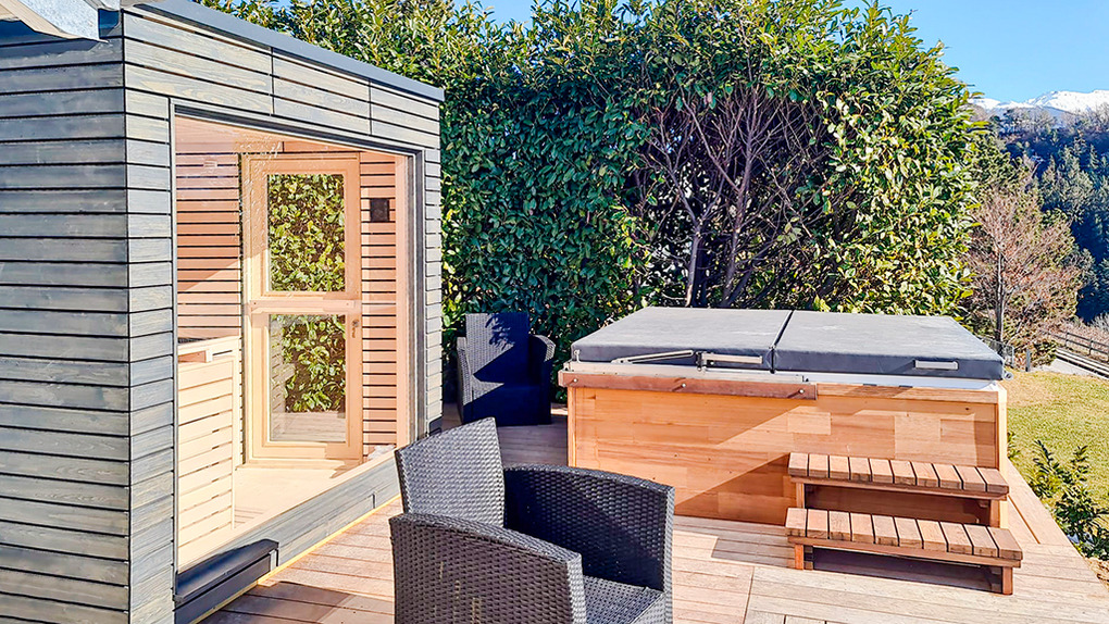 In der Anlage (alles im Außenbereich): Panorama-Sauna, Whirlpool, Ruheliegen (Nutzung täglich 9-11:30 Uhr, 13-16:30 Uhr und nach Vereinbarung). Hinweis: Adults only – Buchungen mit Kindern und Jugendlichen unter 18 Jahren sind in dieser Unterkunft nicht erlaubt.