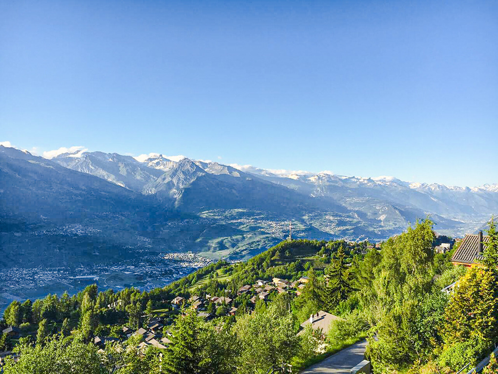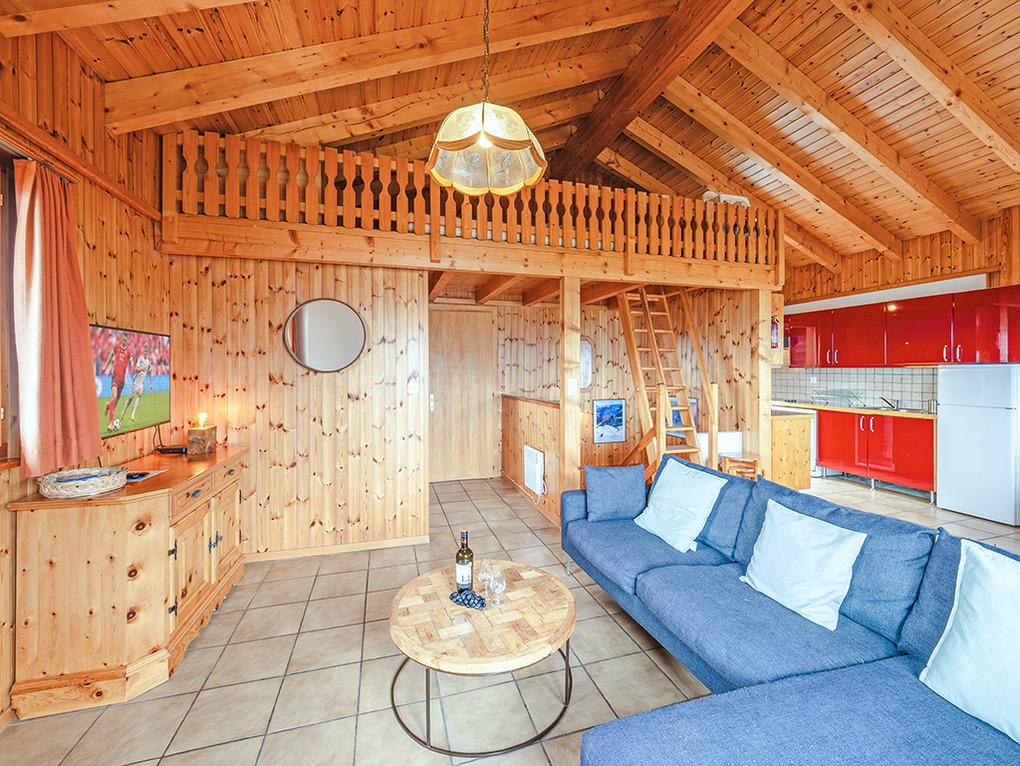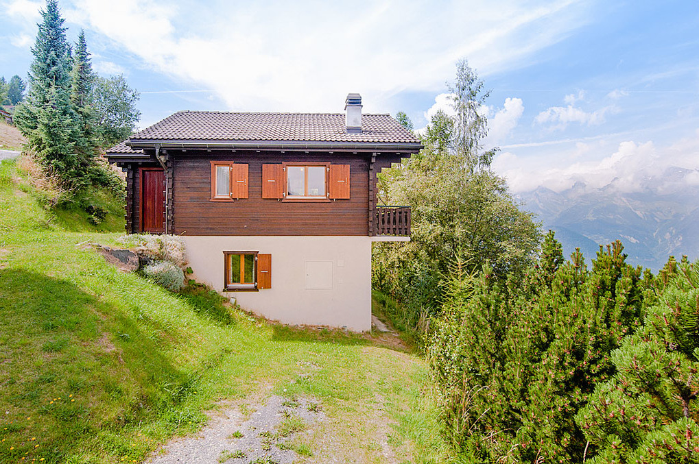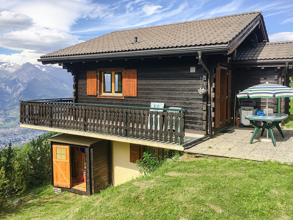 Ort: Nendaz. Ruhige Lage in einer Chalet-Siedlung am oberen Ortsrand. Herrlicher Blick ins Rhône-Tal und auf die umliegende Bergwelt. Ortsmitte 1900 m. Gondel 1200 m. Skibus 150 m.