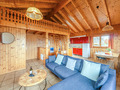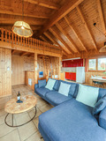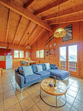 Haus: Schönes Chalet mit Kamin. 4-Zimmer-Haus mit ca. 100 qm Wohnfläche über 2 Etagen. Gemütliches Chalet-Ambiente durch Holzvertäfelung im ganzen Haus. Internetzugang über W-Lan. Waschmaschine. E-Heizung. Warmwasser über 200 l E-Boiler. Nichtraucherhaus. Balkon, Süd-Terrasse mit Sitzmöbeln, Grill. Steile Pkw-Zufahrt auf den letzten 50 m (Winterausrüstung erforderlich). 2 Pkw-Stellplätze am Haus.