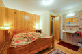 1. Etage: Sehr schöner, rustikal-gemütlicher Wohnraum mit Kaminofen, Sat-TV, Telefon, Sitzgruppe, großem Esstisch, thekenartig abgetrennter, gut ausgestatteter Einbauküche (Backofen, Spülmaschine), Balkon. Doppelzimmer mit franz. Bett. Bad: Wb, WC.