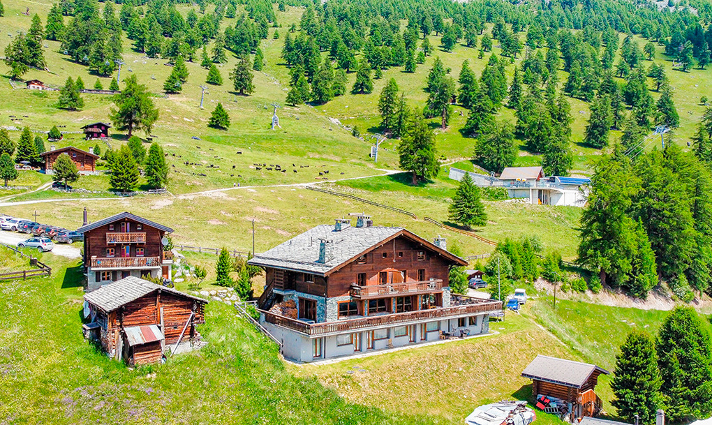 Ort: Nendaz. Einzigartige Lage auf 1800 m Höhe mitten im Skigebiet bei "Prarion". Skiabfahrt vom und bis zum Haus! Zugang mit der Gondel ab Siviez bis in Hausnähe. Gepäck- und Lebensmitteltransport mit der Gondel. Sessellift, Schlepplift, Gondel jeweils nur 100 m. Bäcker, kleiner Lebensmittelladen bei der Talstation der Gondel.