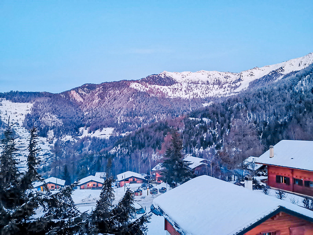 Ort: La Tzoumaz (Mayens de Riddes). Top-Lage: Skifahrt bis in Hausnähe bei entsprechender Schneelage (für geübte Skifahrer). Ruhige Hanglage in einer Chaletsiedlung mit herrlichem Blick. Ortsmitte 700 m. Gondelstation 1,3 km. Skibus nur 50 m.